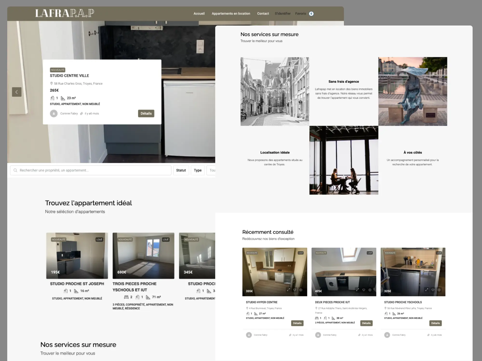 Lafrapap, une agence immobilière située en plein centre de Troyes, a fait appel à Friiiends en 2023 pour moderniser sa présence en ligne. Leur besoin : un site web professionnel permettant de présenter leurs biens immobiliers et de gérer leur catalogue en toute autonomie. Nous avons développé une plateforme sur mesure, intuitive et entièrement administrable, intégrant la gestion des biens, les filtres de recherche, les fiches détaillées et un espace dédié aux mises à jour en temps réel. Résultat : un outil fiable, évolutif et parfaitement adapté à leur activité quotidienne.